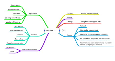 The second session I attended was run by the Internet time alliance. All five of them where there. They did a review of the conference results. They gave their findings, showed interviews with conference attendees and asked the people that attended the session. I made a mind map of it: