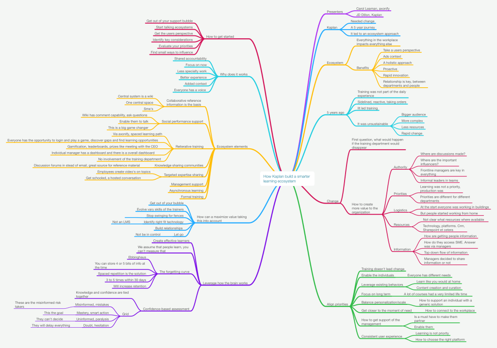 A great presentation on the 5 year journey Kaplan took from old school training to an integrated ecosystem. Inspiring story with great lessons to be learned and practical tips as well. Here is the mind map.