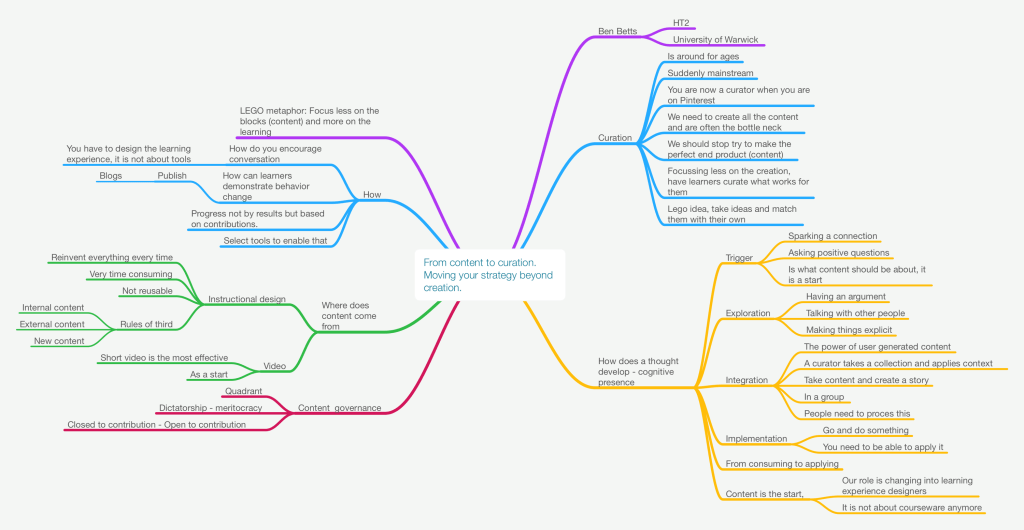 Good session. His key message is content is only the start of a leaning process. he uses a Lego metaphor: Focus less on the blocks (content) and more on the learning. Here is the mind map.