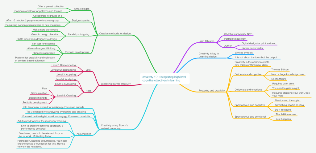 Great session about using creativity and focusing on the higher levels of Bloom’s taxonomy. I wasn’t able to capture all learning activities for each level of Bloom’s during the session. I will update the mind map when his presentation is available.