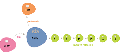 If you ‘flip your classroom‘ you reverse the lecture and homework elements of a lesson: do the lecture at home and do homework at school. The idea is that you replace instruction by a video or an e-learning course (or a combination. This gives the student the opportunity to apply his knowledge under supervision of their teacher. This proves to be much more effective.